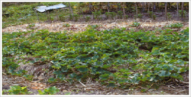 漬瓜:地面左側4割水のみ散布、右6割がバイオリーダーを散布、漬瓜は目立って大きな違いが現れた。